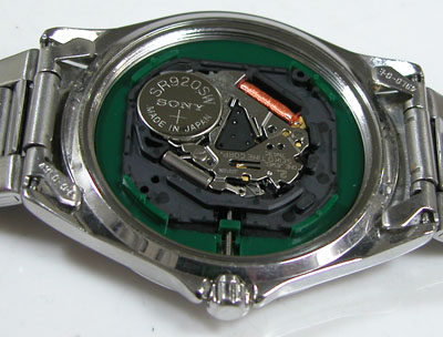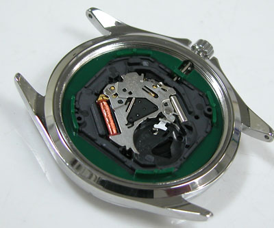綺麗になったケースにムーブメントを戻して電池格納部をチェックします。