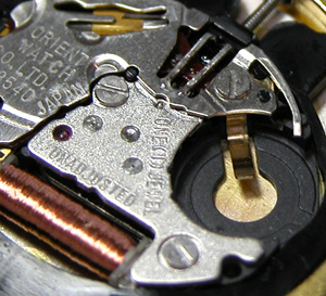 エプソンかと思いましたが、オリエントオリジナルのようです。竜頭の裏側チェック。