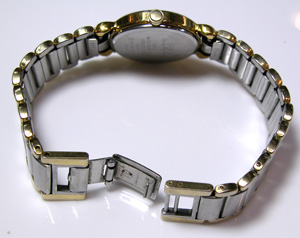 ブレスバックル。板巻きステンレスバンド。これがムーブメント。