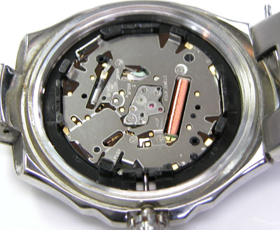 綺麗になったケースにムーブメントを戻して電池格納部をチェックします。