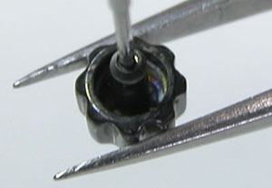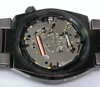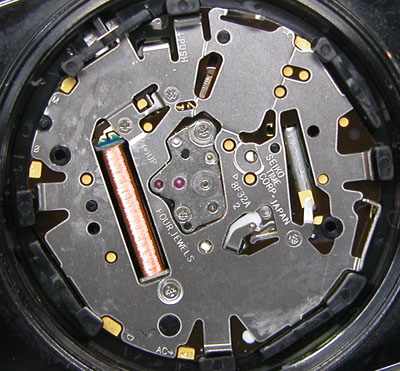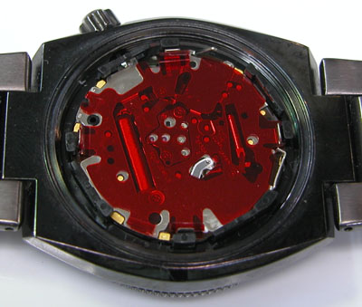 ムーブメントを赤い絶縁フィルムが覆っていますから初の電池交換か。