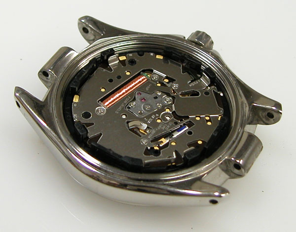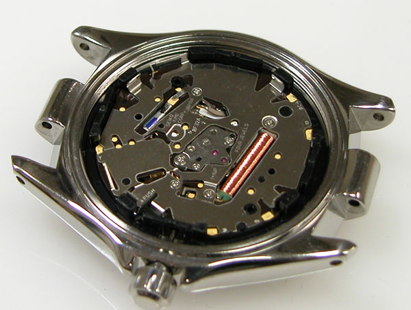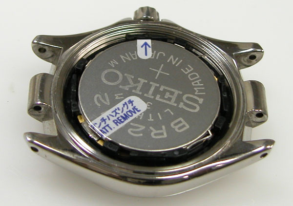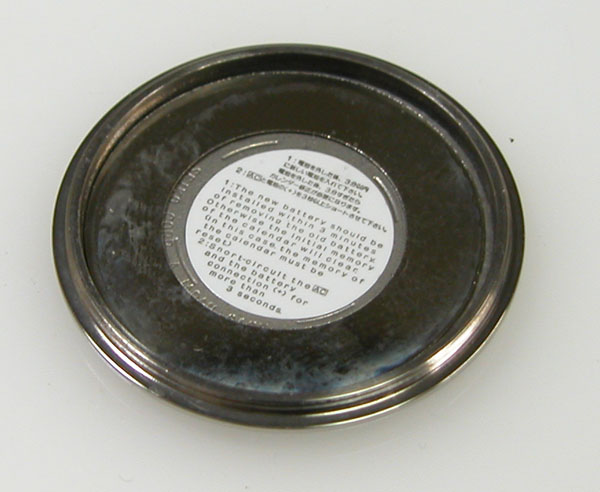 裏蓋を開けると電池がムーブメントを覆っています。