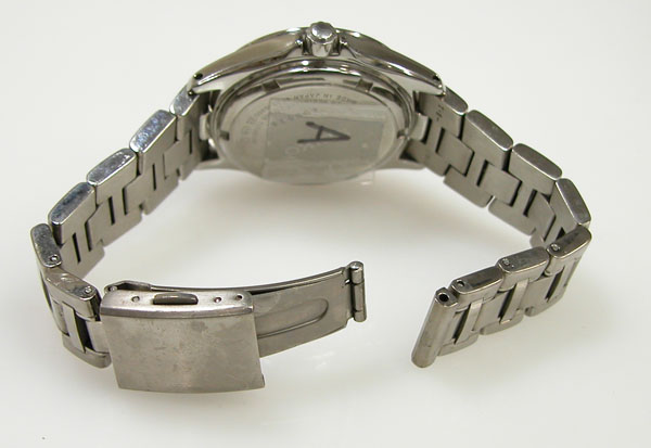 チタン無垢バンドに三つ折れプッシュバックル。