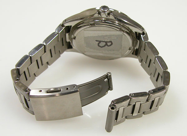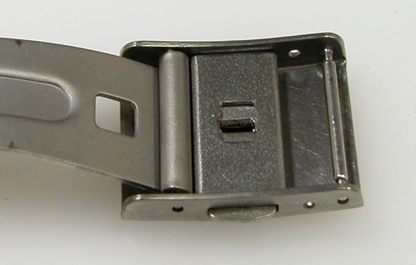 チタン無垢バンドに三つ折れプッシュバックル。