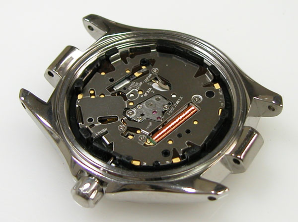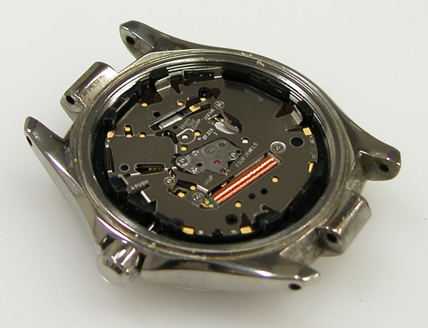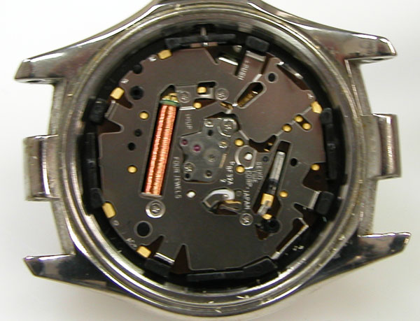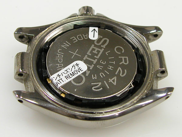 裏蓋を開けると電池がムーブメントを覆っています。