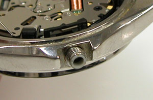 綺麗になったケースにムーブメントを戻して電池格納部をチェックします。