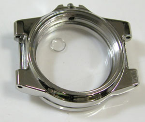ラグ部はCリング式で裏蓋の裏側もチェックします。