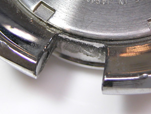 ケース内側もチェックします。竜頭の裏側は洗浄で綺麗になりました。