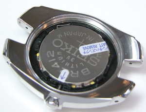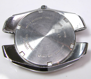 裏蓋には電池交換後の注意事項。パッキンもチェックしましょう。10気圧の割には細いパッキンですね・・