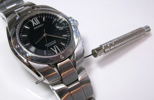 バックルも汚れていますから洗浄します。Cリングピンやバネ棒も洗浄しましょう。