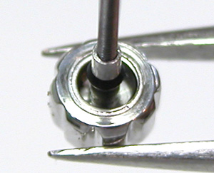 ラグ部ピンも洗浄しましょう。これが取り出した文字盤&ムーブメント。