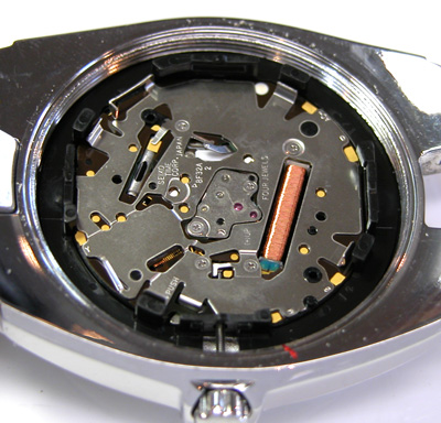 裏蓋を開けると電池がムーブメントを覆っていますから取り外します。