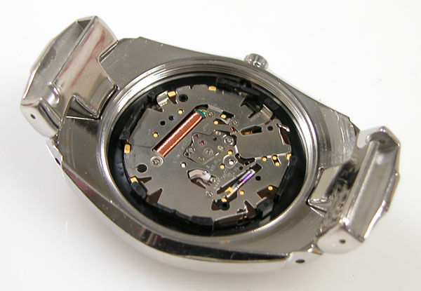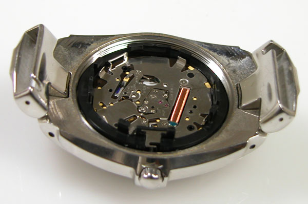 裏蓋を開けると電池がムーブメントを覆っています。