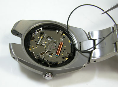 綺麗になったケースにムーブメントを戻して電池格納部をチェックします。