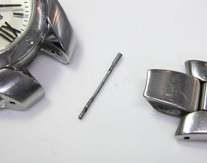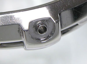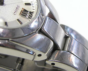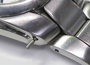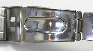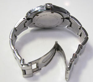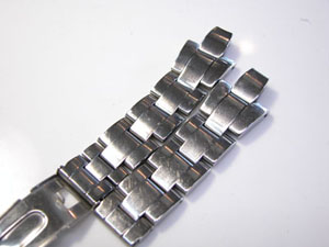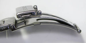 ステンレス無垢バンドに三つ折れプッシュバックル。
