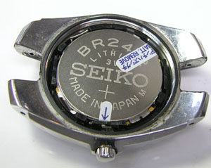 裏蓋を開けると電池がムーブメントを覆っています。