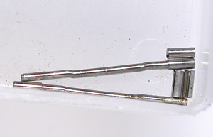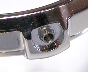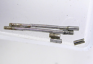 ラグ部のピンも洗浄。本来はまっすぐなピンですがラグ幅の分曲がって(ずれて)います。かなりの力が掛かった事が良く分かります。当然若干曲がった分ラグ部の遊びが大きくなります。