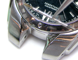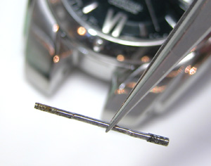 バンドを外してラグ部のピンをチェックしますがピンボケですね(;^_^A。これではラグ部のチェックですか。それにしても綺麗なラグ部ですね・・・未使用?これでOK。
