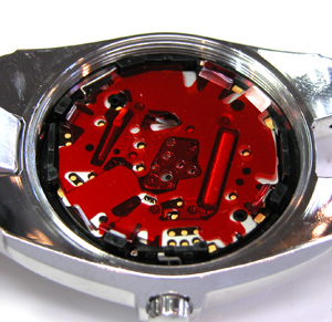 裏蓋を開けると電池がムーブメントを覆っていますから取り外します。