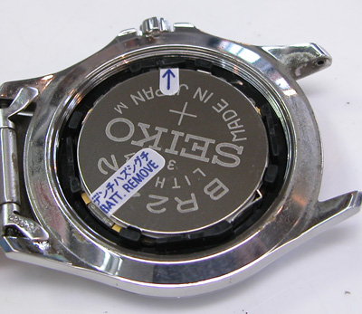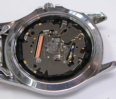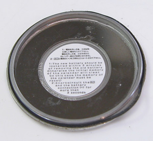 裏蓋を開けると電池がムーブメントを覆っています。