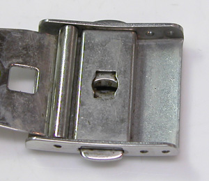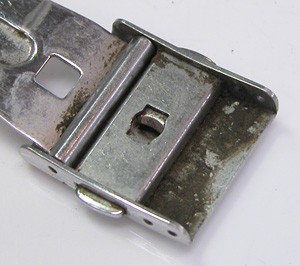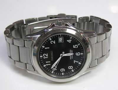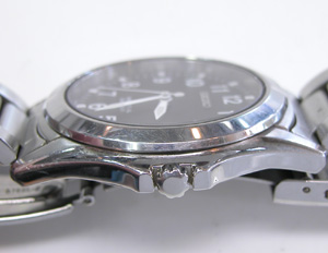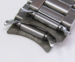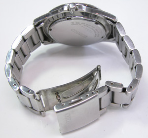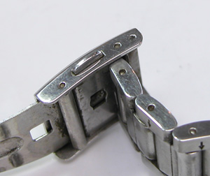 ステンレス無垢バンドに三つ折れプッシュバックル。