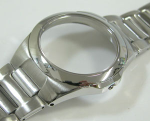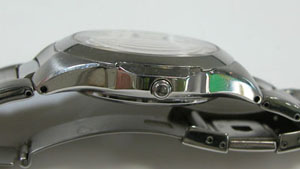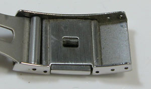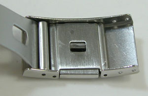 ステンレス無垢バンドに三つ折れプッシュバックル。