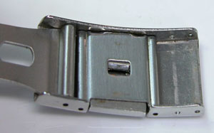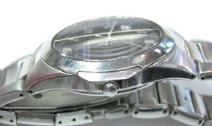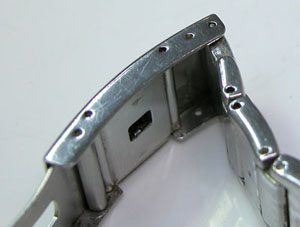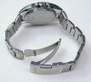 ステンレス無垢バンドに三つ折れプッシュバックル。