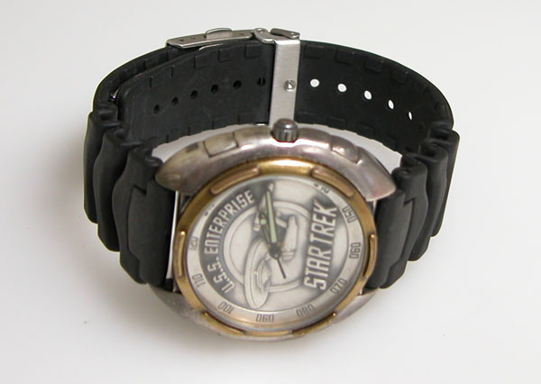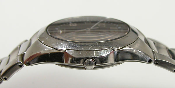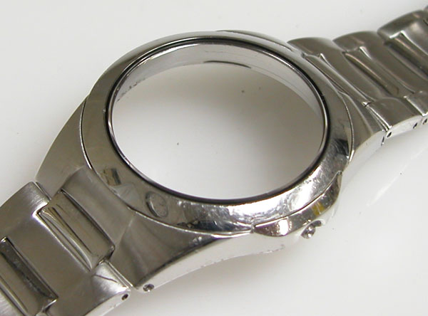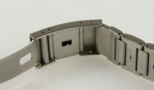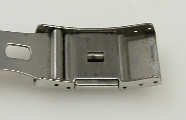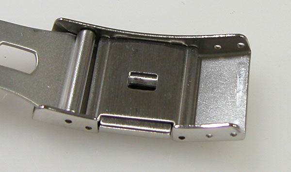ステンレス無垢バンドに三つ折れプッシュバックル。
