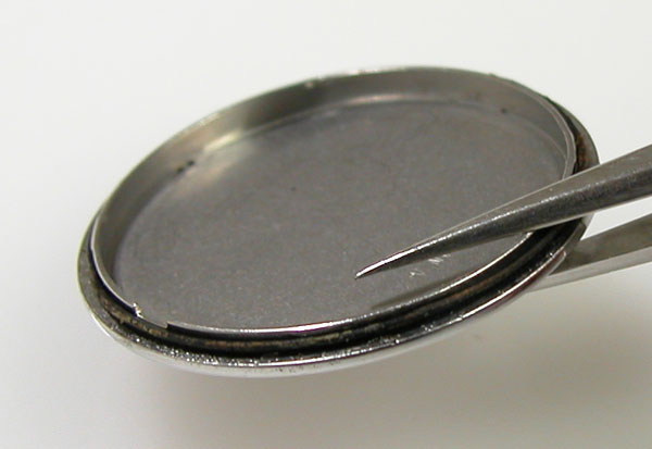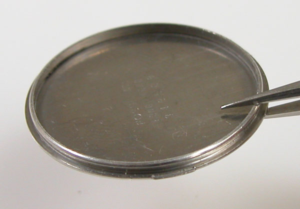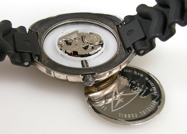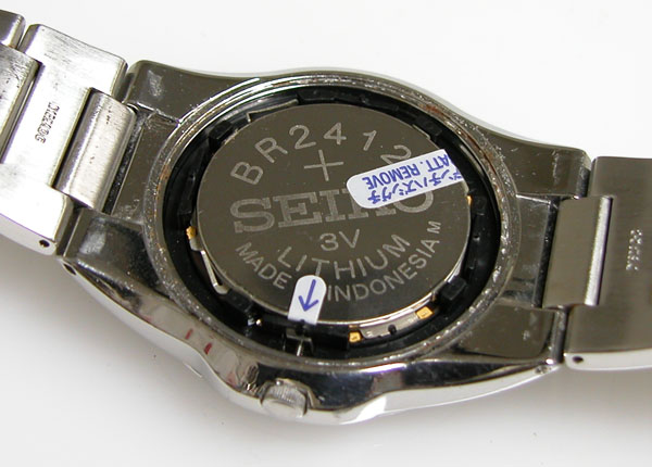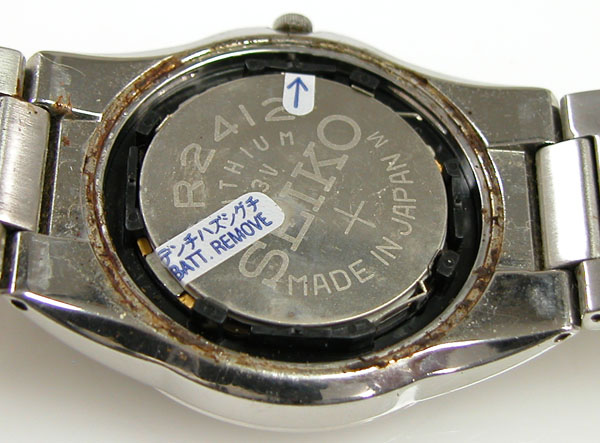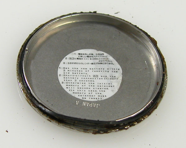裏蓋を開けると電池がムーブメントを覆っています。