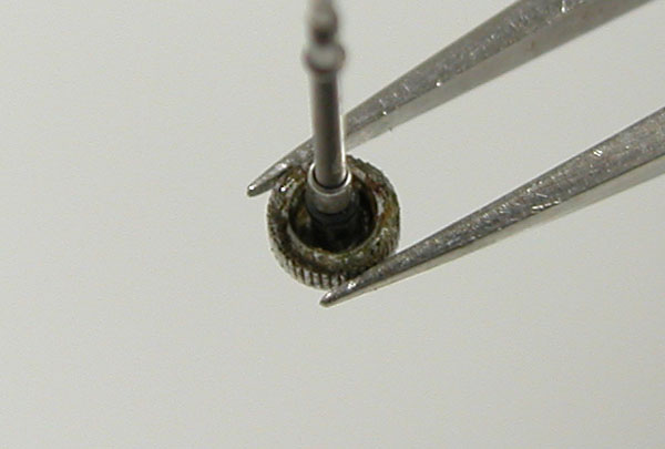 裏蓋のサビは削り落とします。