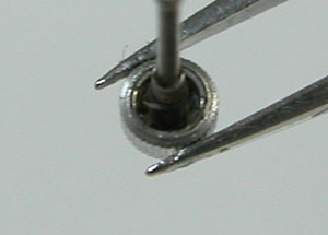 ムーブメント拡大。○の箇所が錆びておりますから湿気の侵入ですか。