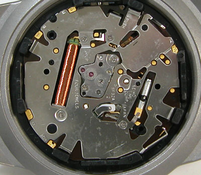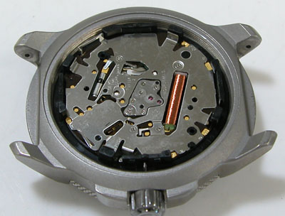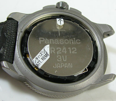 裏蓋を開けると電池がムーブメントを覆っています。