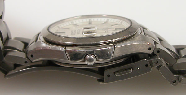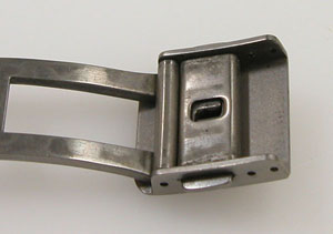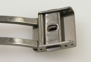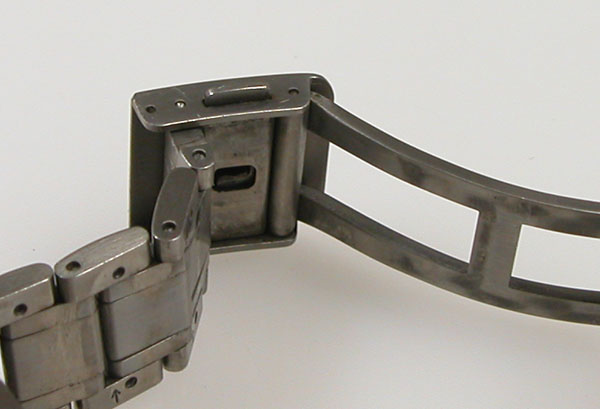 チタン無垢バンドに三つ折れプッシュバックル。