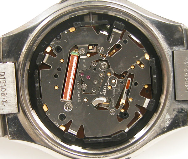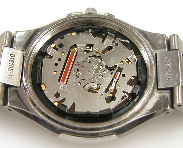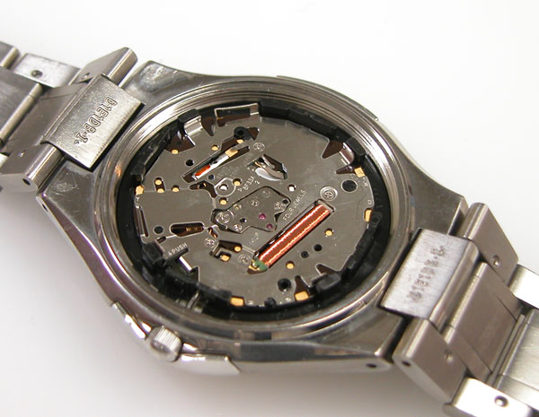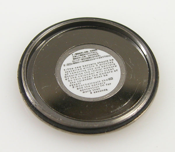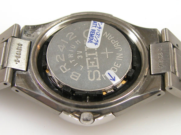 裏蓋を開けると電池がムーブメントを覆っています。