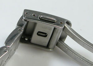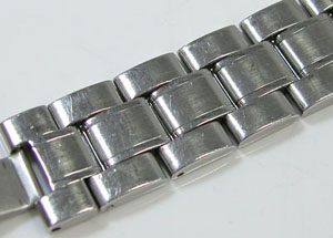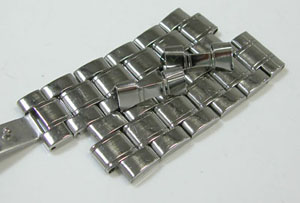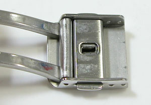 ステンレス板巻きバンドに三つ折れプッシュバックル。