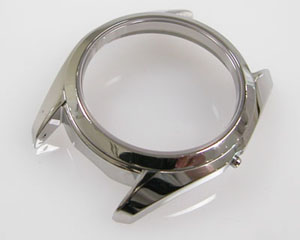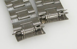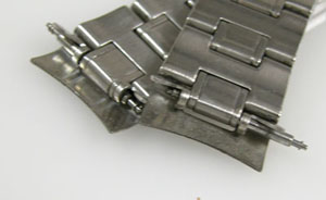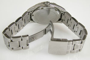 ステンレス無垢バンドに三つ折れプッシュバックル。