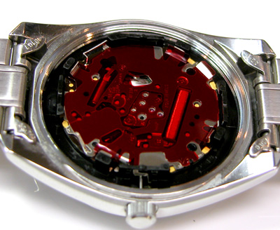 ムーブメントは赤い絶縁フィルムで覆われています。