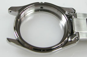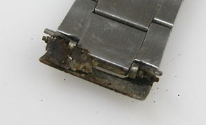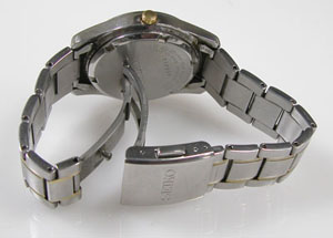 ステンレス無垢バンドに三つ折れプッシュバックル。