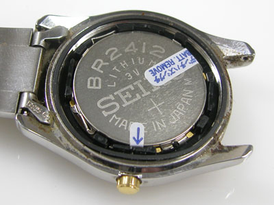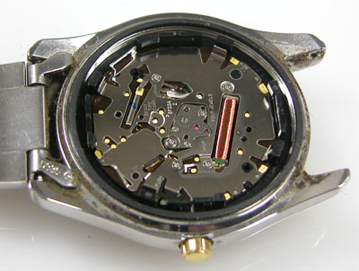 裏蓋を開けると電池がムーブメントを覆っています。