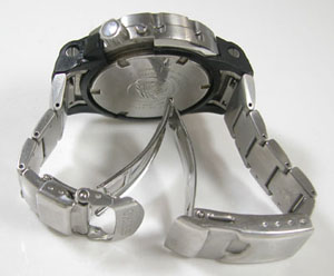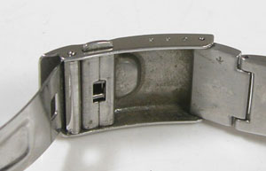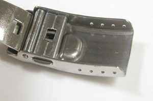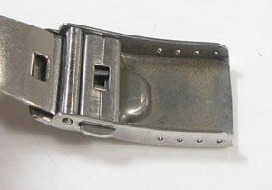 ステンレス無垢バンドに三つ折れプッシュバックル。