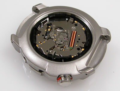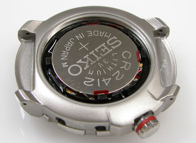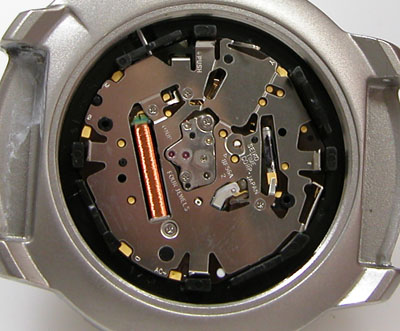 裏蓋を開けると電池がムーブメントを覆っています。