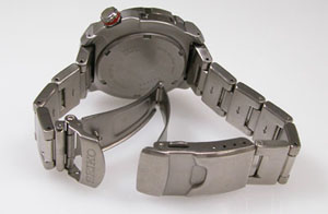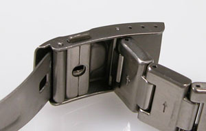 チタン無垢バンドに三つ折れダブルロック。