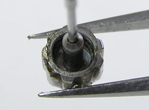 綺麗になったケースにムーブメントを戻して電池格納部をチェックします。