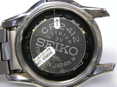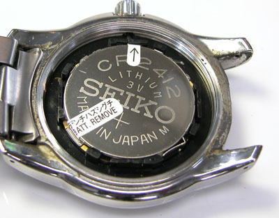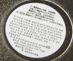 裏蓋を開けると電池がムーブメントを覆っています。