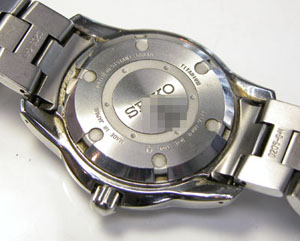 裏蓋はスクリューバックで右が裏蓋記載。