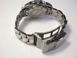 チタン無垢バンドに三つ折れダブルロック。