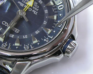 9時側の竜頭を回すと右の写真の外周の内装リングが回転します。