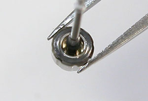 綺麗になっケースにムーブメントを戻して電池格納部をチェックします。