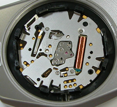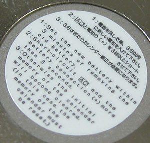 裏蓋を開けると電池がムーブメントを覆っています。