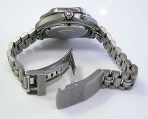 チタン無垢バンドに三つ折れダブルロック。